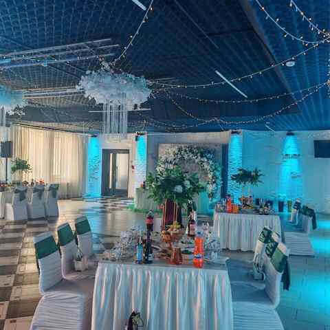 При оформлении торжества для клиентов действуют специальные предложения. Например, бесплатный декор зала при заказе свадебного мероприятия.